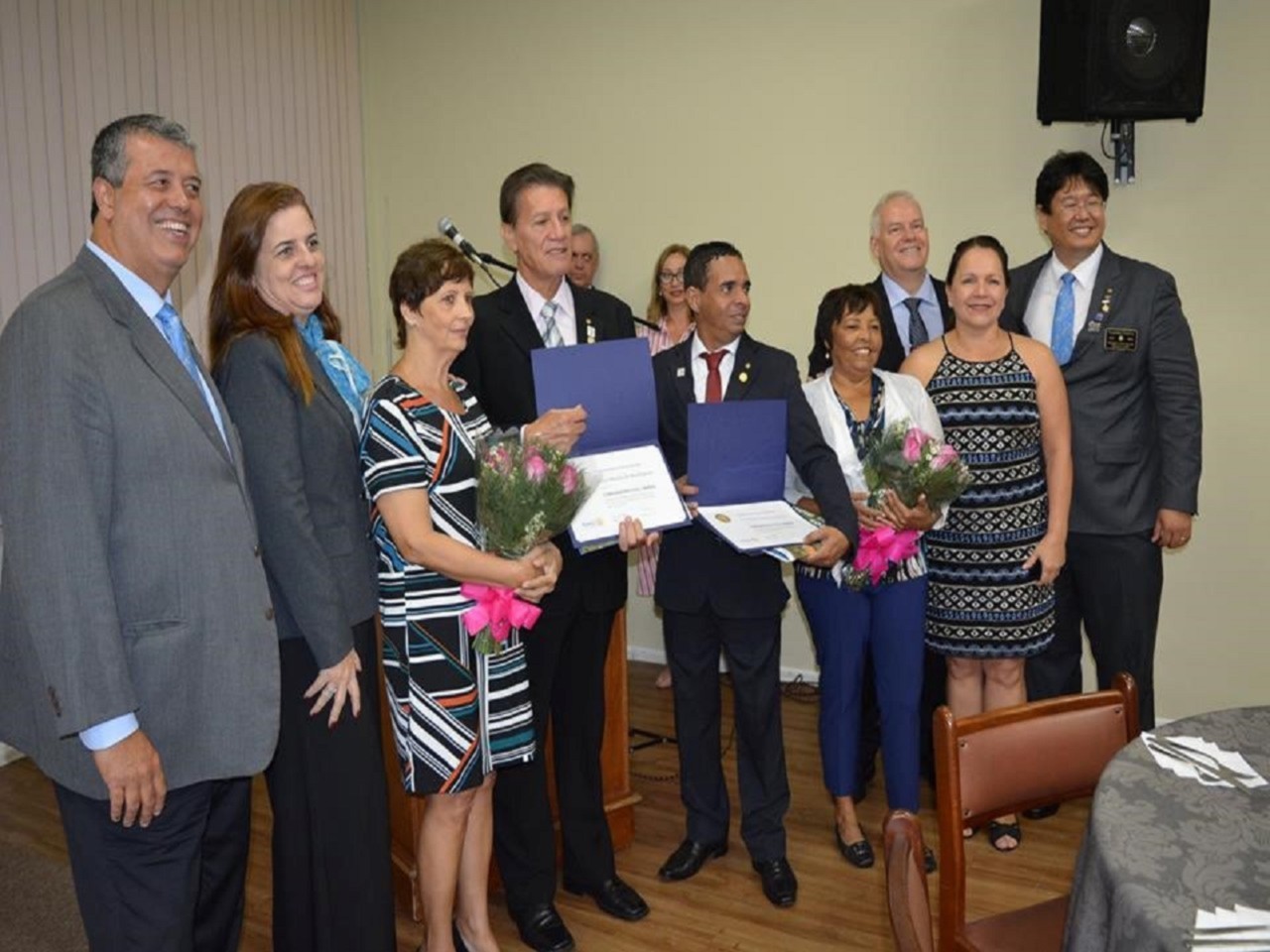 Na foto: Casal Presidente Andrea e Antonio Carlos Dueñas, Companheiro Ivan e esposa Margarida, Companheiro Washington e mãe Iracema, Casal Companheiro Watson e Maely Travassos e o Governador Cláudio Takata.