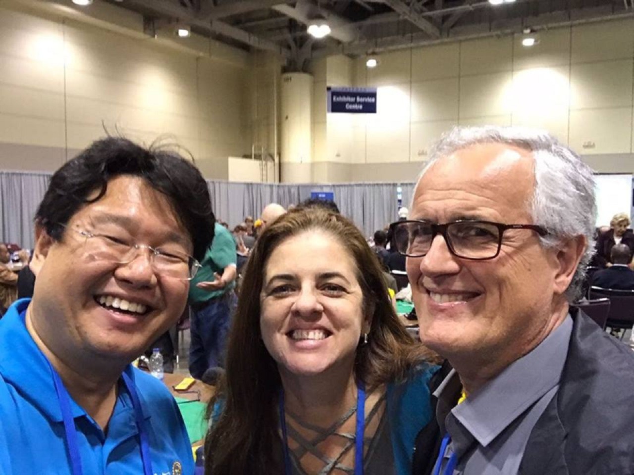 A Presidente Que Faz a Diferença, Andréa Vilela Ferraz Duenas, ladeada pelos governadores Cláudio Takata, ano rotário 2017-18 e Marcos Anselmo Ferreira Franco, ano rotário 2010-11, comemoram o desempenho do Distrito 4420. O Distrito foi homenageado na segunda plenária da Convenção Internacional de Toronto pelo 4º lugar no MUNDO em arrecadação para o combate à Polio!