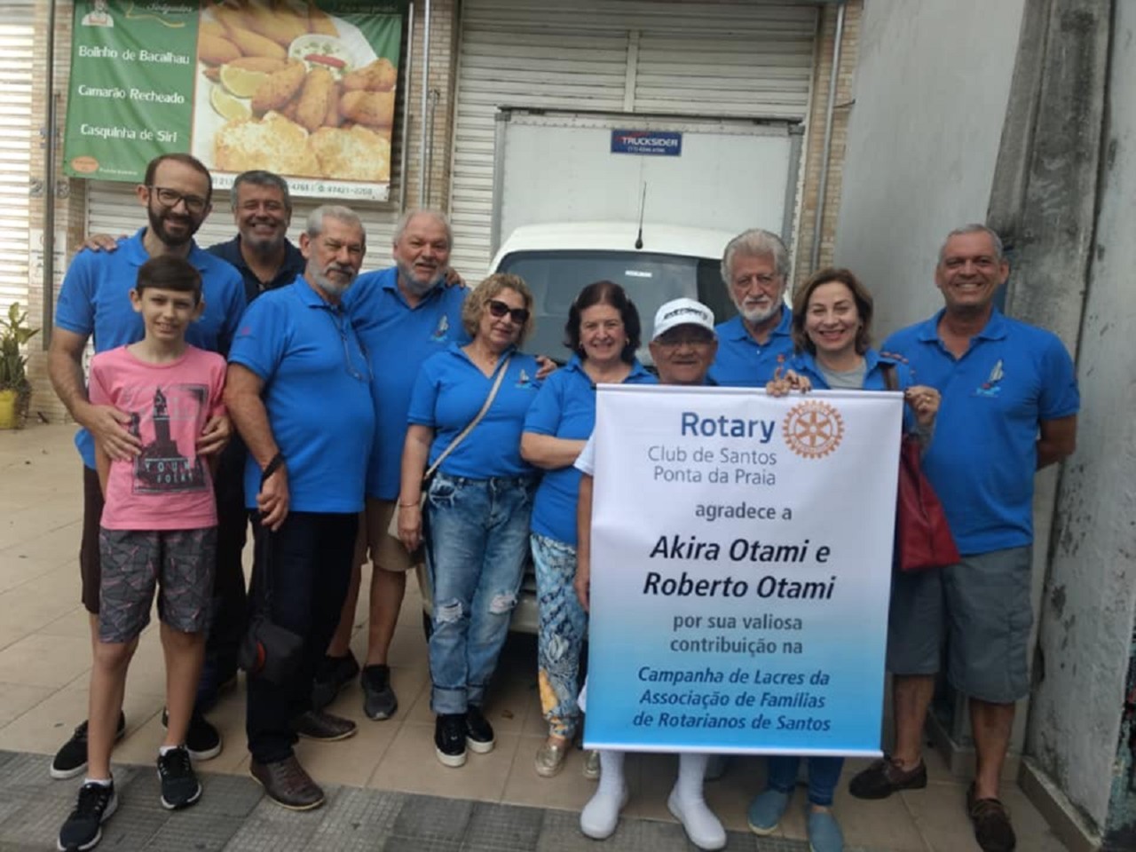 O RCS - Ponta da Praia homenageou na manhã, do dia 01/09/18, os Srs. Akira e Roberto Otami, do tradicional Pastel do Akira em Santos, pela sua importante colaboração na Campanha dos Lacres da Associação de Famílias de Rotarianos de Santos.