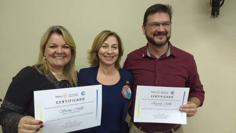 Em 03/10/18, o Rotary Club de Santos Ponta da Praia recebeu para brilhante palestra sobre Terapias Quânticas, Sirena Mello, terapeuta thetahealer e coach e Ricardo Mello, terapeuta quântico e coach.