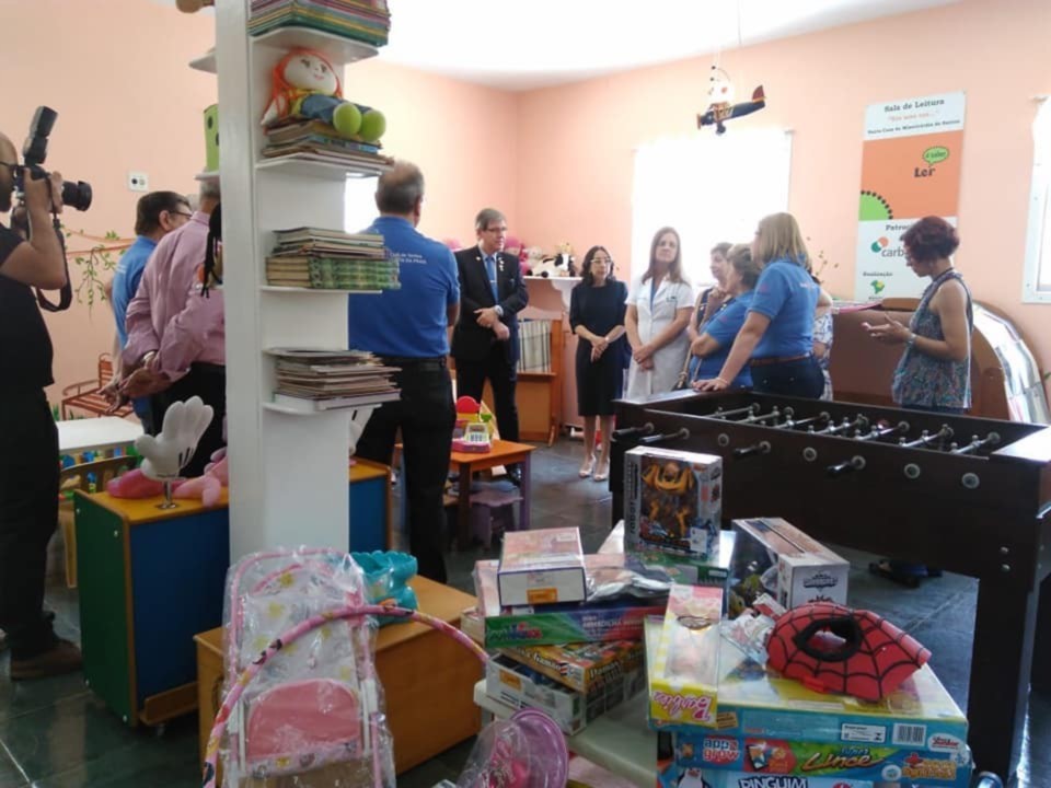 Na manhã do dia 31/10, os companheiros do Rotary Club de Santos-Ponta da Praia e o casal governador do Distrito 4420, Sônia Mara e Carlos Torci fizeram a entrega de brinquedos, livros e itens de papelaria para o Projeto Brinquedoteca que atende as crianças internadas na Santa Casa de Misericórdia de Santos, levando um pouco de alívio e alegria para os pequenos que estão passando por um momento bastante estressante.