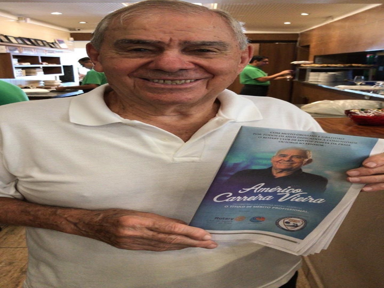 Outorga do Certificado de Mérito Profissional ao Sr. Américo Carreira Vieira, proprietário da Cantina Babbo Américo realizada em 30/01/2019, em Santos.