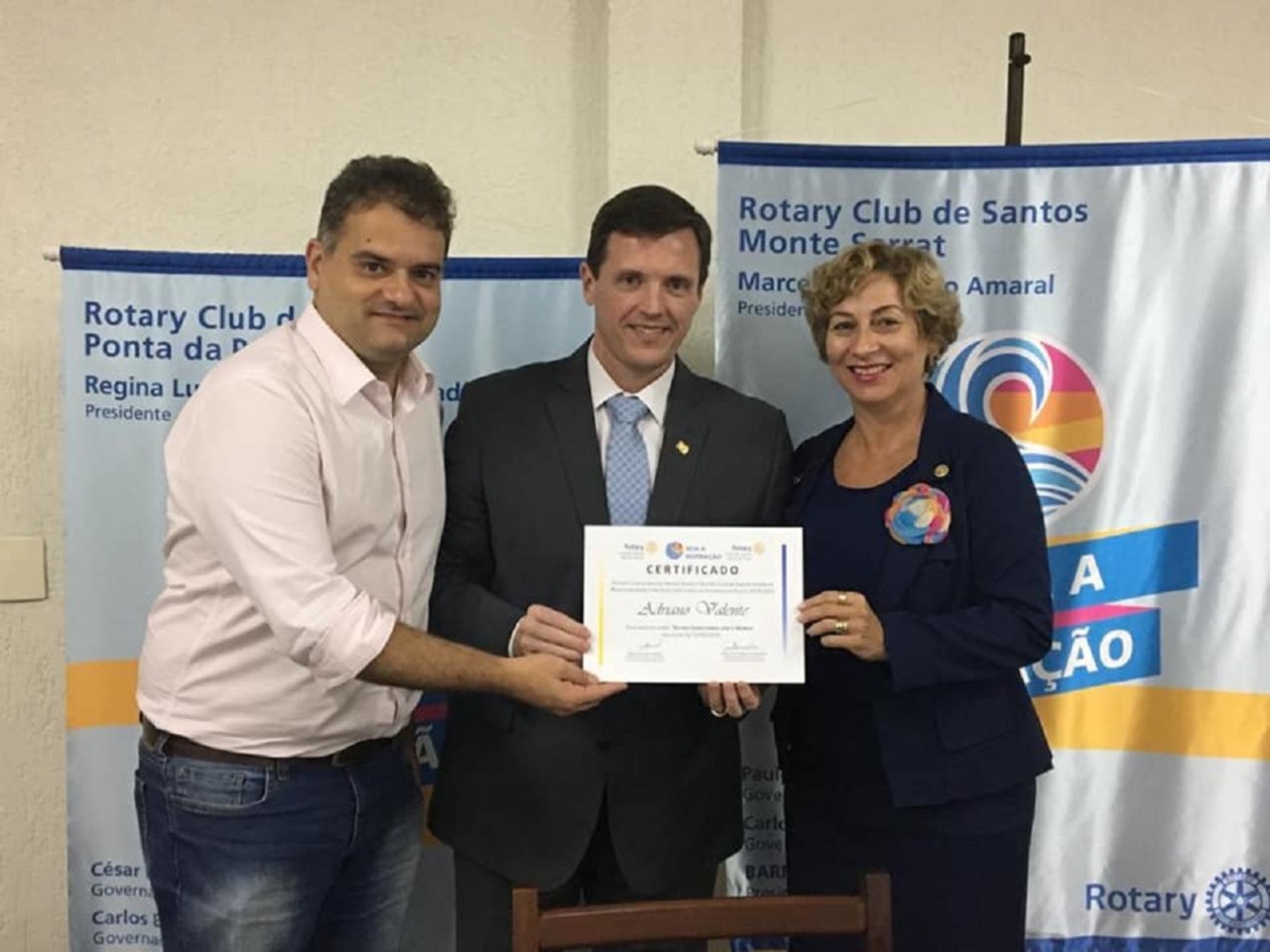 Em 13/05/19, os Rotarys Clubs de Santos Ponta da Praia e Monte Serrat realizaram reunião conjunta com excelente palestra do Governador eleito para o ano rotário 2019-2020, Adriano Valente.