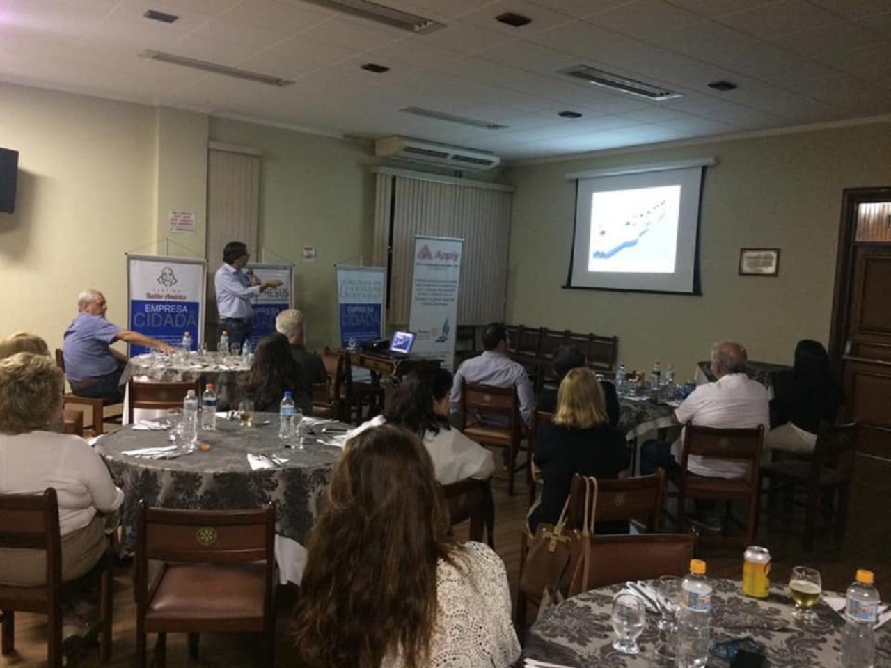 No dia 24/04, o Rotary Club de Santos Ponta da Praia, em reunião conjunta com o Rotary Club de Santos Monte Serrat, recebeu o arquiteto e urbanista Glaucus Farinello, gestor do projeto de reformulação da Ponta da Praia, que detalhou todos as etapas da importante obra.