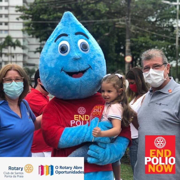 A Presidente Motivadora do RCS - Ponta da Praia, Véra Marcia de Oliveira Baldo, participou hoje, 24 de Outubro - Dia Mundial de Combate à Poliomielite, de uma grande Campanha de Vacinação e Conscientização sobre a Pólio organizada pelos clubes das áreas Litoral 1 e 2 do Distrito 4420 de Rotary Internacional.